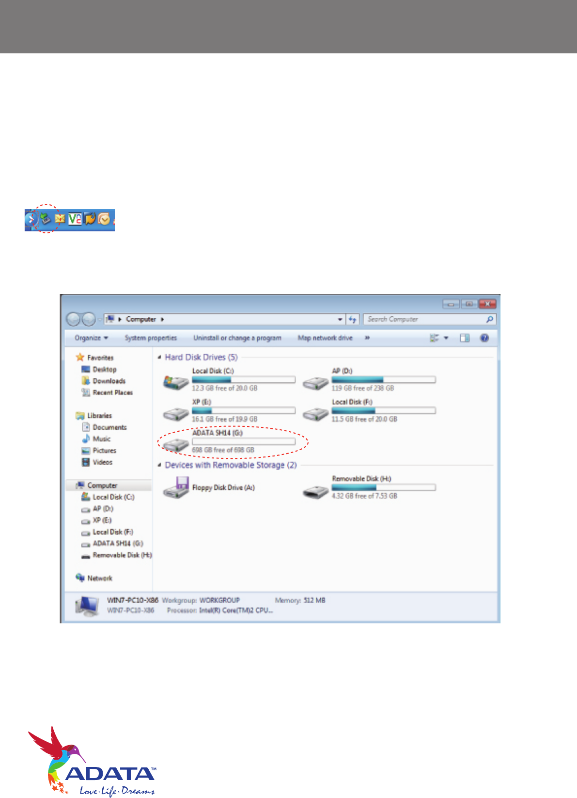 Figure 4. In the Windows Explorer, you will see a new ADATA drive